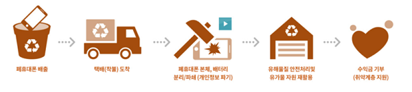 E-순환거버넌스를 통해 휴대폰을 폐기하는 과정(출처: 나눔폰 홈페이지)